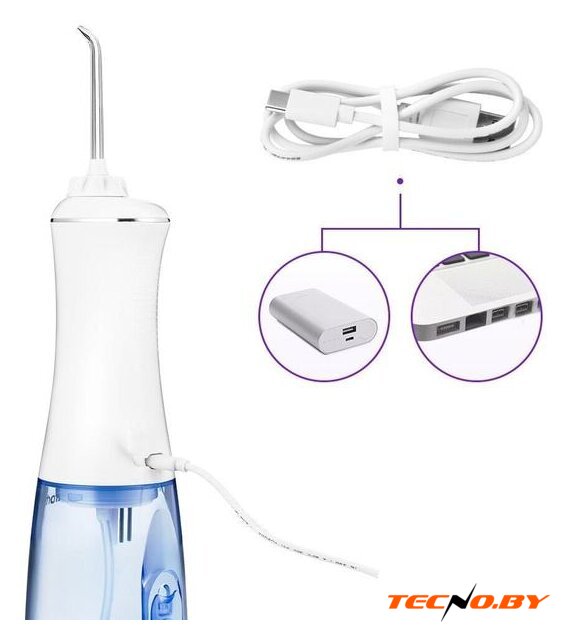 ирригатор, мягкая чистка/массаж, питание от аккумулятора, регулировка струи, в комплекте: чехол, USB-кабель