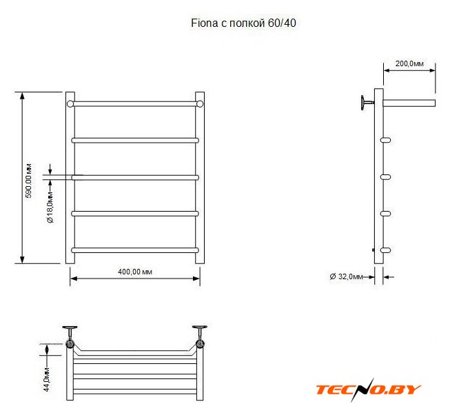 водяной, "лесенка", нержавеющая сталь, подключение нижнее (500 мм, 1"), 80x53.2 см, цвет: хром