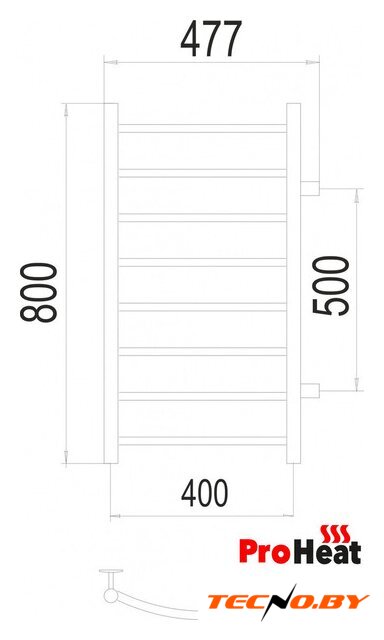 водяной, "лесенка", нержавеющая сталь, подключение боковое (500 мм, 1"), 80x57.7 см, цвет: хром