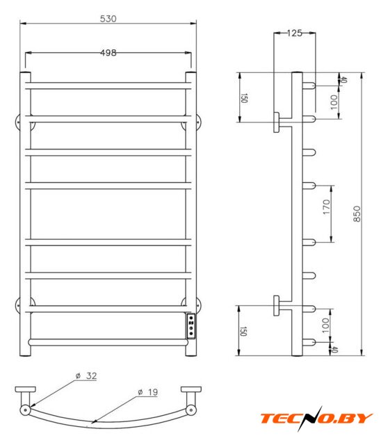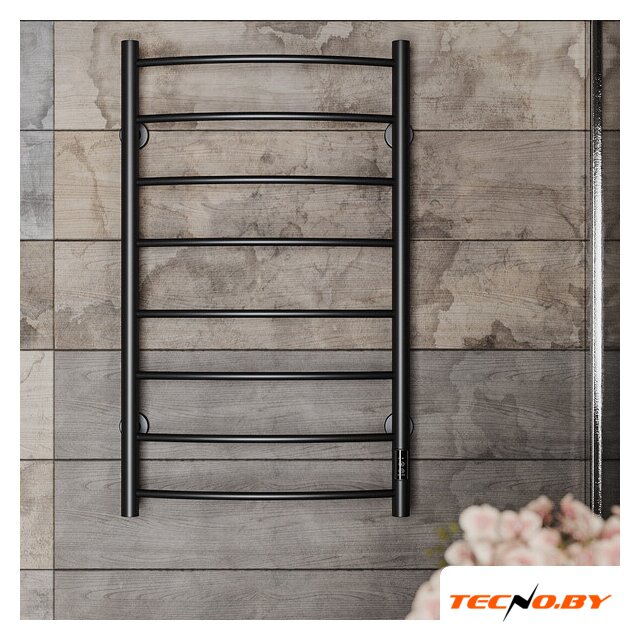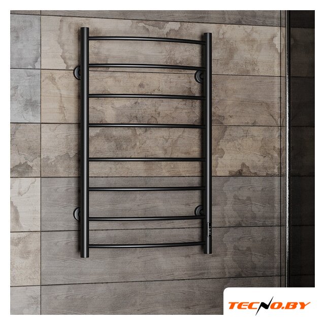 электрический, "лесенка", углеродистая сталь, подключение нижнее, таймер, 85x53 см, цвет: черный