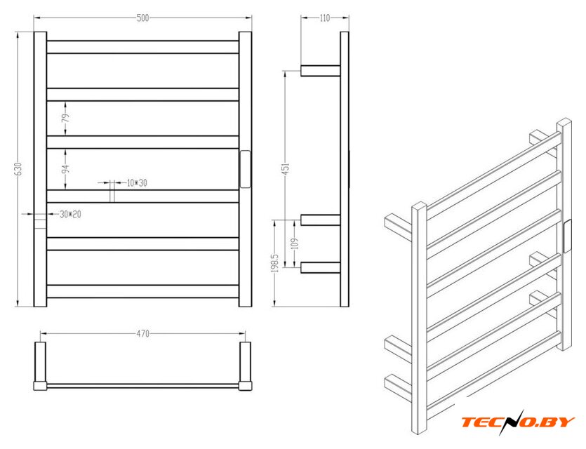 водяной, "лесенка", нержавеющая сталь, подключение нижнее/верхнее, 80x50 см, цвет: хром