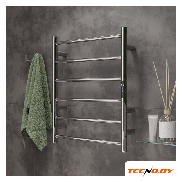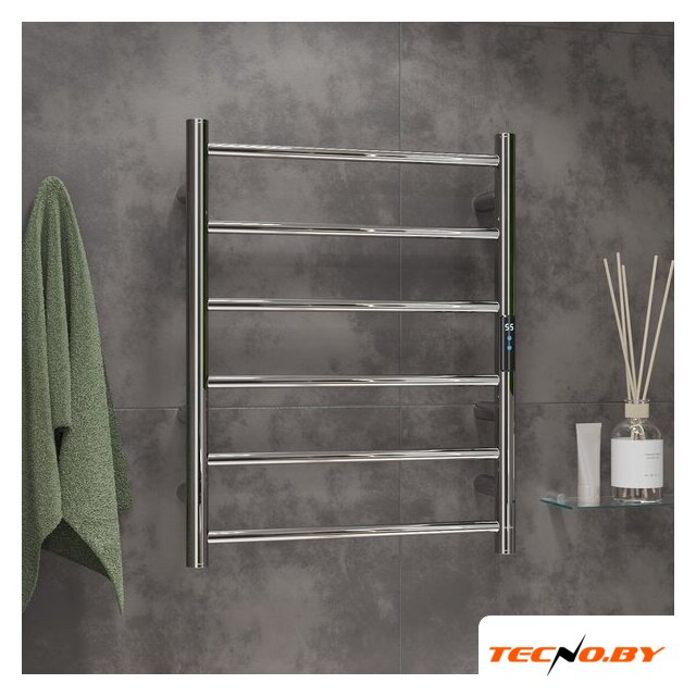 водяной, "лесенка", нержавеющая сталь, подключение боковое (500 мм, 1"), 60x50 см, цвет: хром