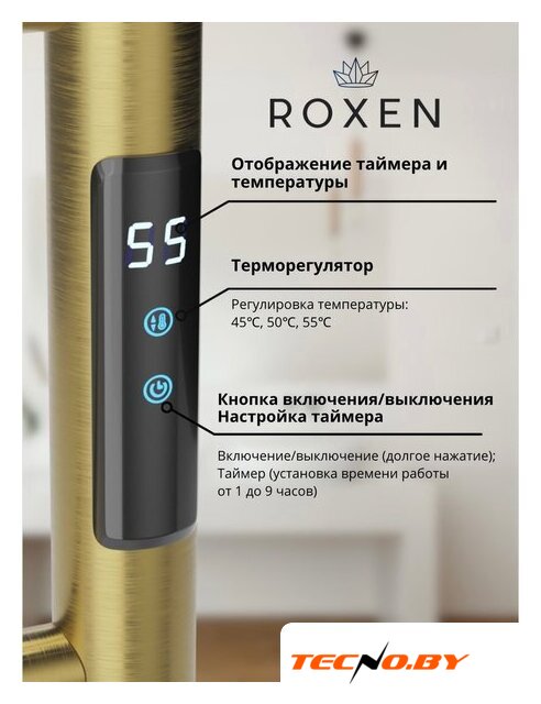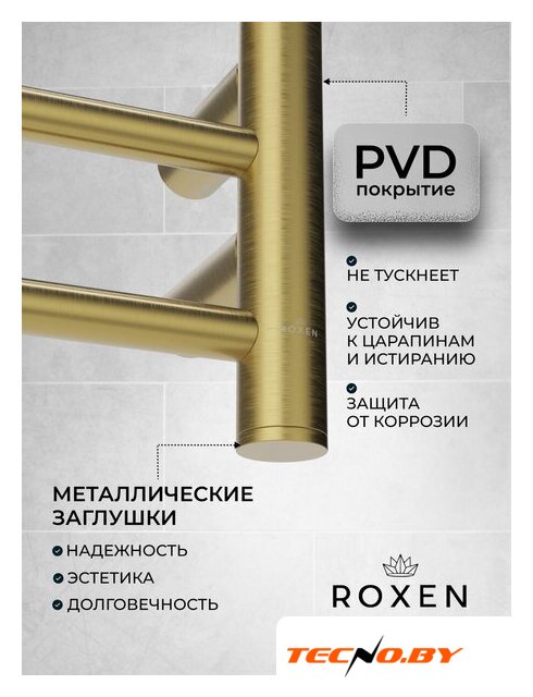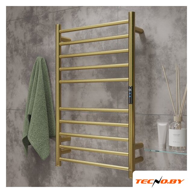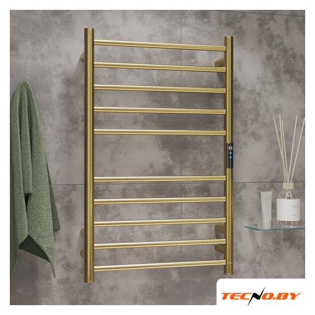 электрический, "лесенка", нержавеющая сталь, подключение боковое, таймер, терморегулятор, 79x50 см, цвет: золотистый