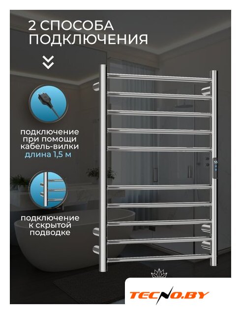 водяной, "лесенка", нержавеющая сталь, подключение нижнее (500 мм, 1"), 100x50 см, цвет: белый