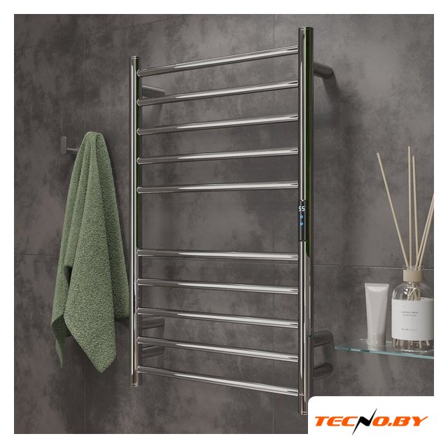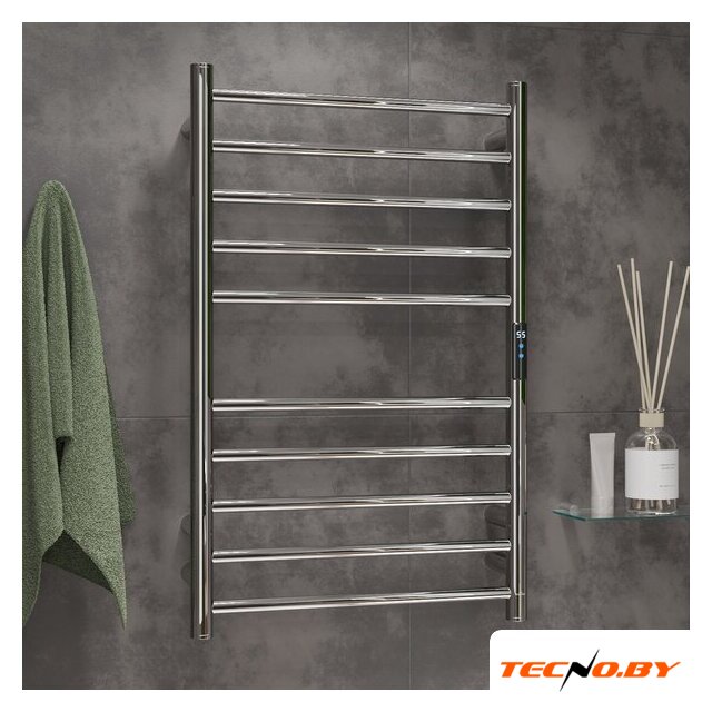 электрический, "лесенка", нержавеющая сталь, подключение боковое, таймер, терморегулятор, 63x50 см, цвет: хром