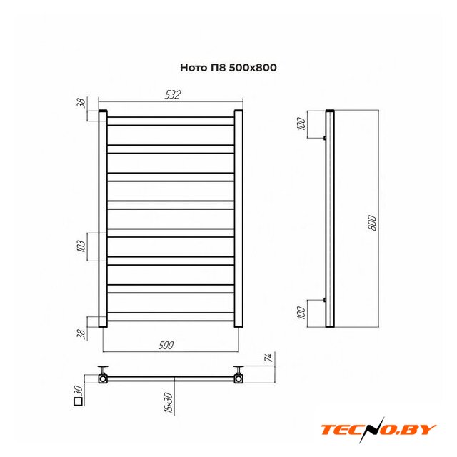 водяной, "лесенка", нержавеющая сталь, подключение нижнее, 100x53.2 см, цвет: сатин