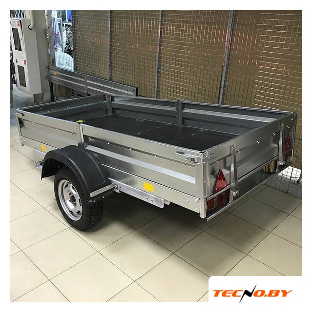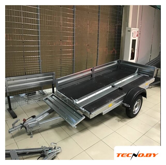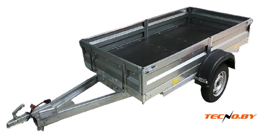 универсальная жесткая сцепка, рессорная подвеска, колеса R13, быстросъемный борт, комплектация тент/дуги, размеры платформы 200x130 см, борт 30 см, тент 80 см