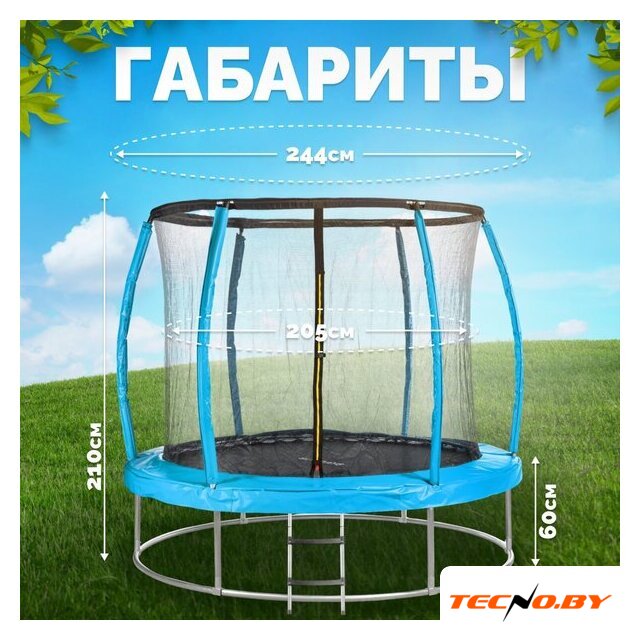 пружинный (каркасный) круглый, диаметр (диагональ): 252 см, нагрузка: 120 кг, с сеткой, с лестницей