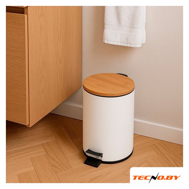 11 л, крышка открывается педалью, пластик, цвет: бежевый/коричневый