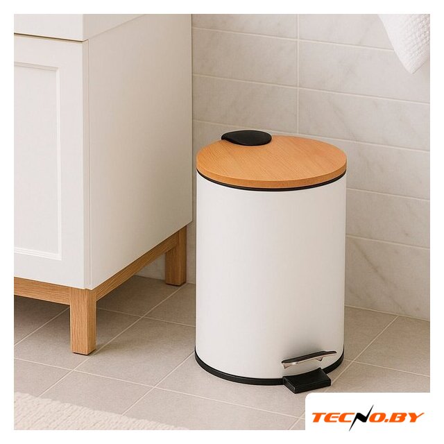 10 л, крышка открывается педалью, пластик, цвет: белый
