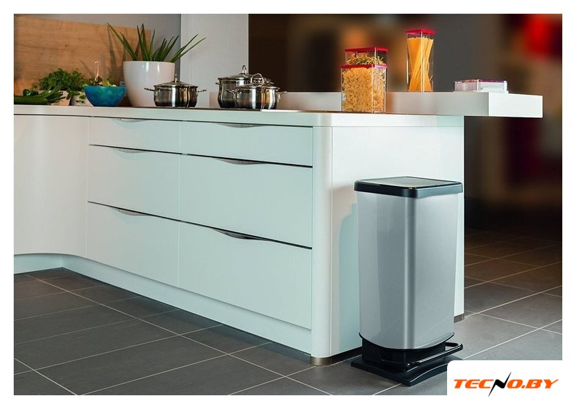 40 л, крышка открывается педалью, пластик, цвет: серый/черный