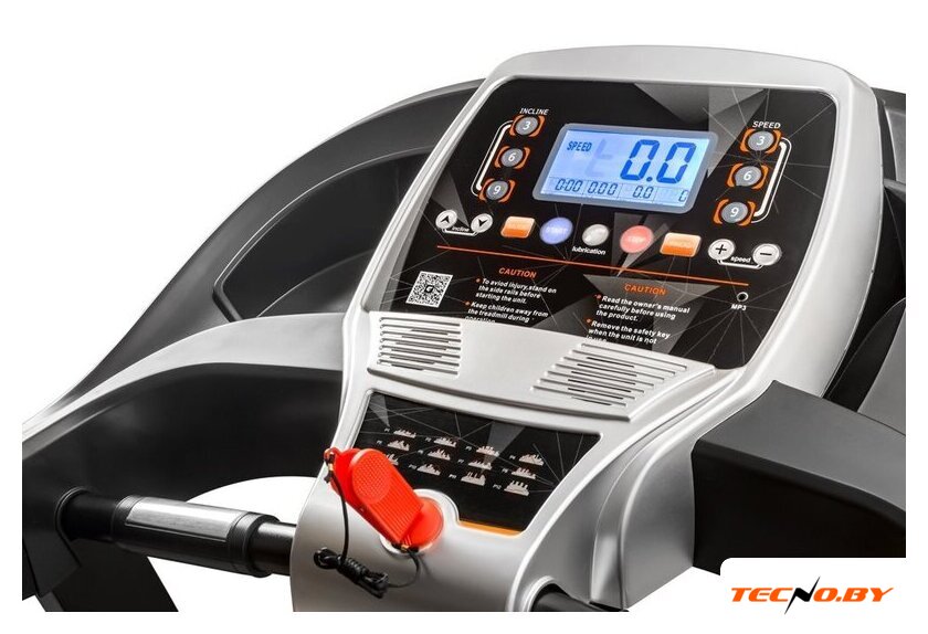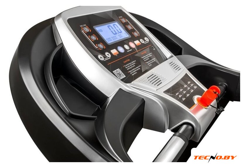 электрическая беговая дорожка, ручная ступенчатая регулировка угла наклона, полотно: 40×100 см, скорость движения: 0.8–12 км/ч, 16 программ тренировок