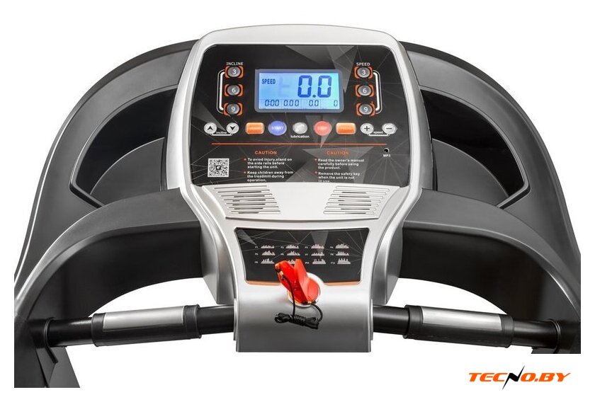 электрическая беговая дорожка, без регулировки угла наклона, полотно: 41.5×120 см, скорость движения: 0.8–12 км/ч, 15 программ тренировок