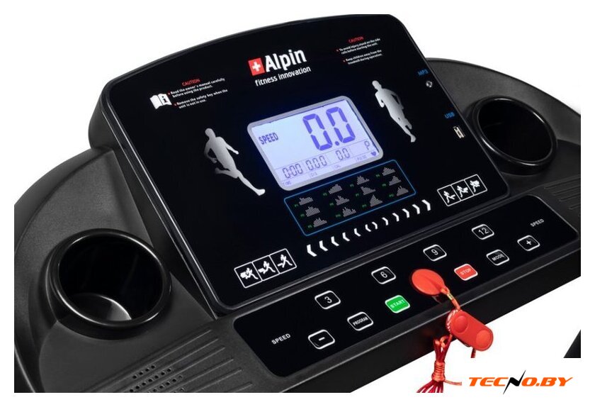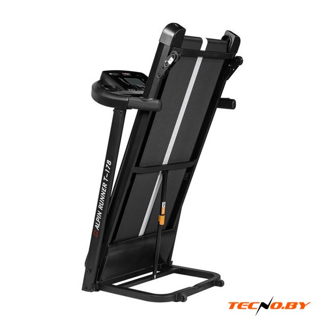 | Особенности | Alpin Runner T-178 – современная электрическая беговая дорожка, прекрасно сочетающая в себе просторное полотно, мощный двигатель, многофункциональный компьютер и разумную цену. Плавное и уверенное движение полотна на скорости от 1,0 до 14 км/ч обеспечивает надежный двигатель постоянного тока мощностью 2,0 л.с., при этом уровень шума не превышает 58 дБ. Мощность двигателя позволяет заниматься на тренажере пользователям весом до 120 кг. Беговое полотно размером 115 см в длину и 42 см в ширину – обеспечит комфортные и безопасные тренеровки. Угол наклона регулируется механическим путем в диапазоне от 0 до 5%. Верхний слой полотна выполнен из специального полимера, который не только гарантирует длительную эксплуатацию, но и за счет ромбовидной формы поверхности обеспечивает надежное сцепление обуви с полотном и допонительную амортизацию. В основе конструкции одинарной деки лежит древесно-волокнистая композитная плита средней плотности. Ее толщина составляет 16 мм, она обработана парафином. |