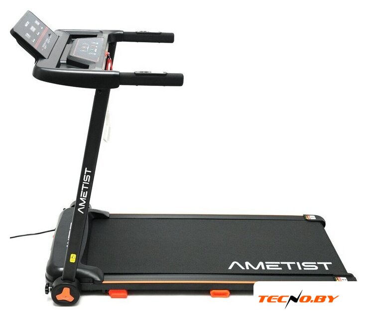 электрическая беговая дорожка, ручная ступенчатая регулировка угла наклона, полотно: 42×110 см, скорость движения: 1–15 км/ч, 12 программ тренировок