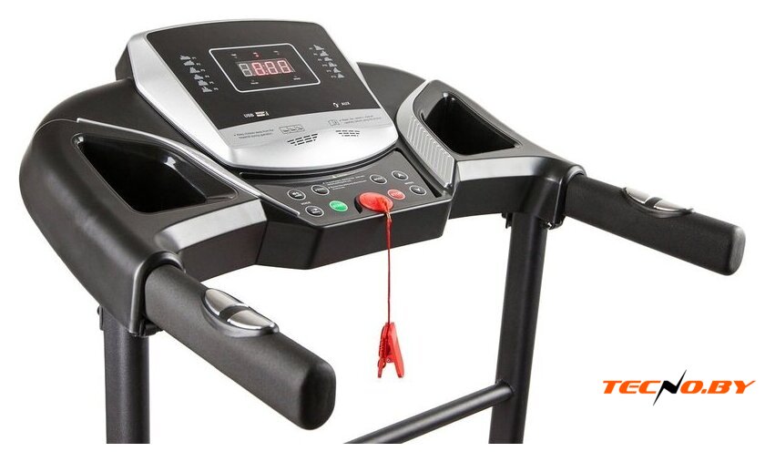 электрическая беговая дорожка, ручная ступенчатая регулировка угла наклона, полотно: 42×110 см, скорость движения: 1–15 км/ч, 12 программ тренировок