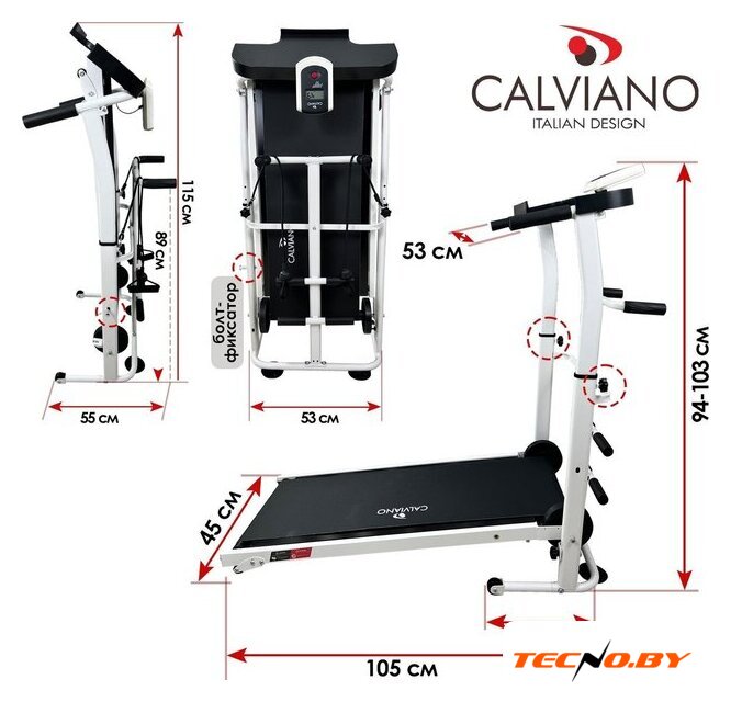 | Особенности | Прочная и надежная конструкция;Эспандеры для рук;Диск здоровья;Широкая подставка для планшета или смартфона;На встроенном ЖК дисплее вы сможете осуществлять контроль за показаниями тренировок: время, скорость, израсходованные калории, пройденная дистанция;Регулировка угла наклона полотна: 2 положения;Регулировка поручней по высоте: 5 положений;Беговая дорожка оснащена двумя транспортировочными роликами для удобства перемещения;Складная конструкция беговой дорожки Calviano BeFIT обеспечит удобное хранение даже в небольшом помещении. |
