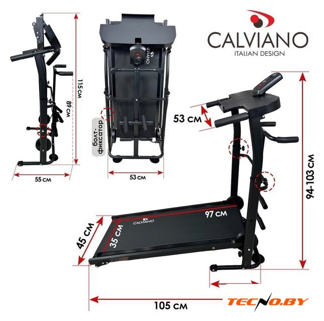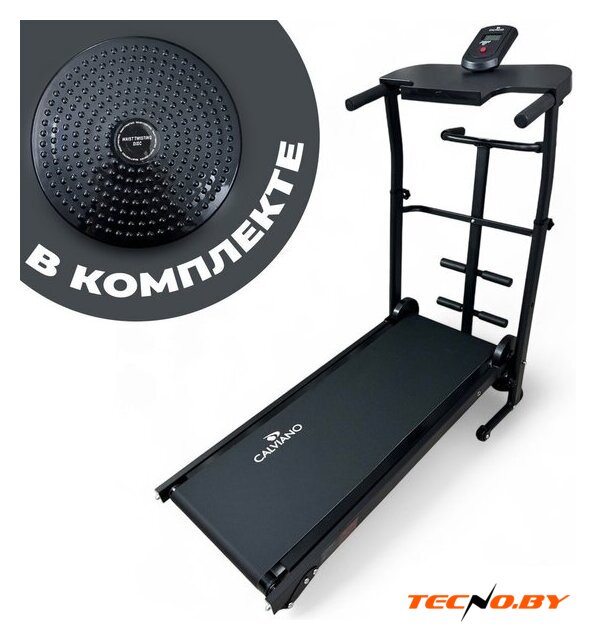 | Особенности | Прочная и надежная конструкция;Эспандеры для рук;Диск здоровья;Широкая подставка для планшета или смартфона;На встроенном ЖК дисплее вы сможете осуществлять контроль за показаниями тренировок: время, скорость, израсходованные калории, пройденная дистанция;Регулировка угла наклона полотна: 2 положения;Регулировка поручней по высоте: 5 положений;Беговая дорожка оснащена двумя транспортировочными роликами для удобства перемещения;Складная конструкция беговой дорожки Calviano BeFIT обеспечит удобное хранение даже в небольшом помещении. |