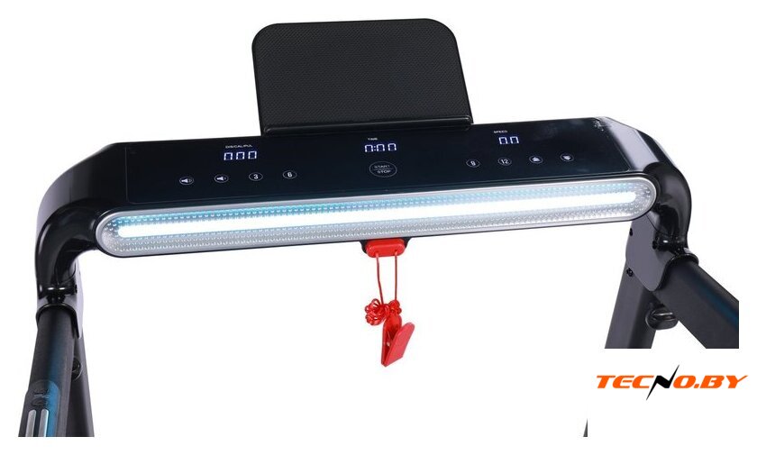 электрическая беговая дорожка, ручная ступенчатая регулировка угла наклона, полотно: 41×119 см, скорость движения: 1–16.8 км/ч, 12 программ тренировок