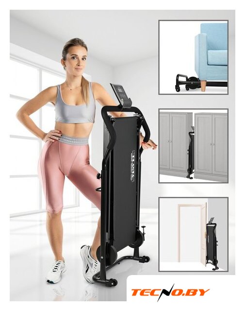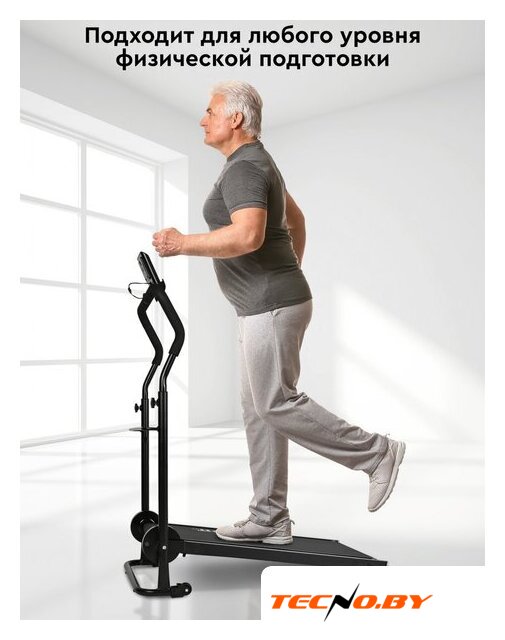 электрическая беговая дорожка, без регулировки угла наклона, полотно: 38×100 см, скорость движения: 1–6 км/ч