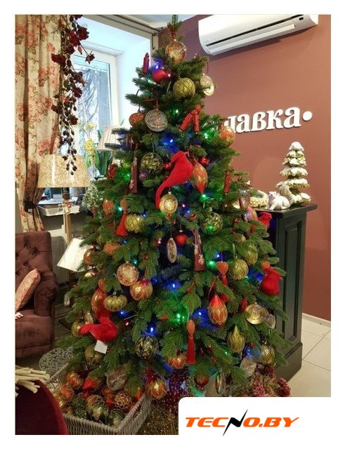 искусственная ель, литая, 1.8 м, цвет зеленый, шишки