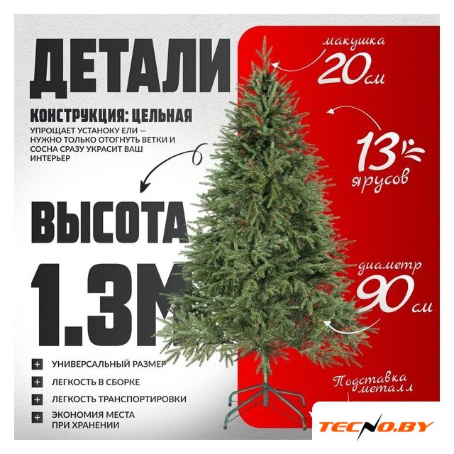 искусственная ель, литая, 1.1 м, цвет зеленый