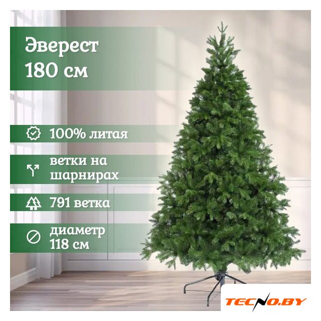 искусственная ель, литая, 1.8 м, цвет зеленый