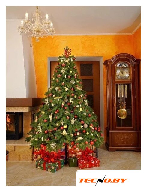 искусственная ель, литая+ПВХ, 1.8 м, цвет зеленый, шишки