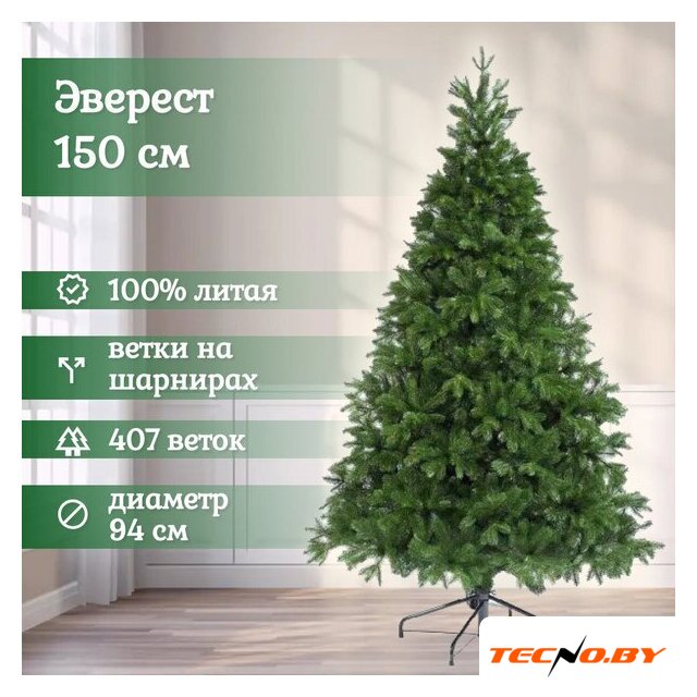 искусственная ель, литая+ПВХ, 1.2 м, цвет зеленый, шишки
