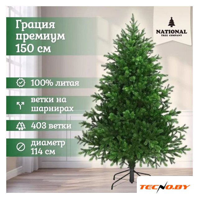 искусственная ель, литая, 1.9 м, цвет зеленый