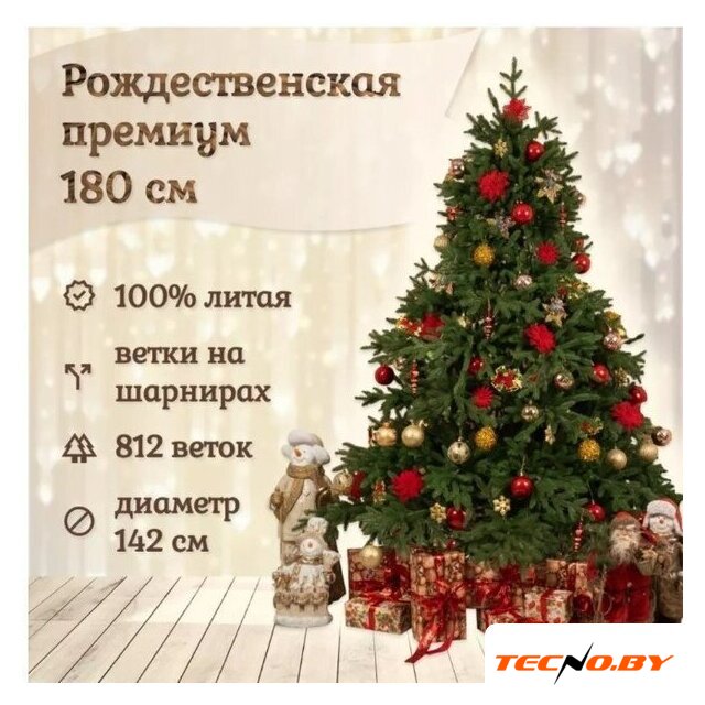 искусственная ель, литая, 1.8 м, цвет зеленый