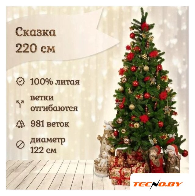 искусственная ель, литая, 1.9 м, цвет зеленый
