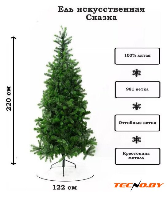 искусственная ель, литая, 1.5 м, цвет зеленый