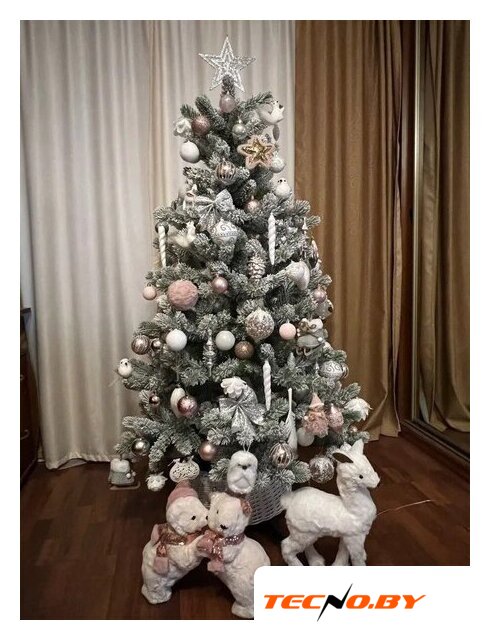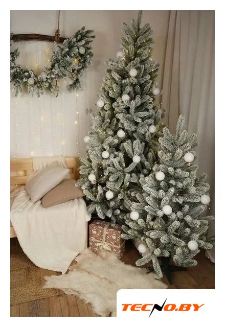 искусственная ель, литая+ПВХ, 2.1 м, цвет белый/зеленый