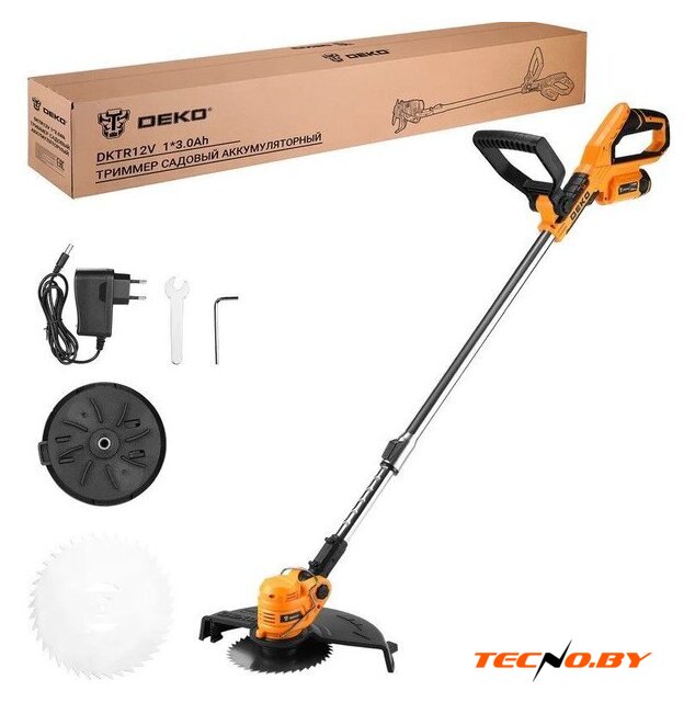 аккумуляторный, оснастка: леска+металлический нож+металлический диск+пластиковый нож, ширина скашивания: 15 см, 12 В, аккумулятор в комплекте, 2.4 кг