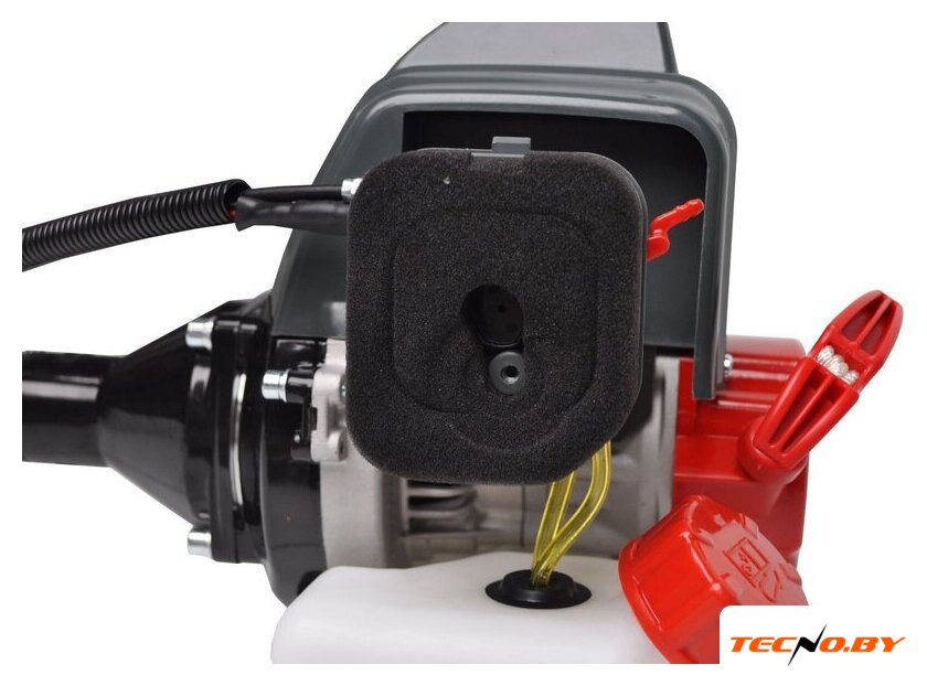 Несмотря на вес в 7.3 кг, триммер обеспечивает комфорт во время работы благодаря плечевому ремню, который равномерно распределяет нагрузку. Верхнее расположение двигателя способствует лучшему балансу и уменьшает усталость оператора, а встроенная антивибрационная система значительно снижает вибрации.
