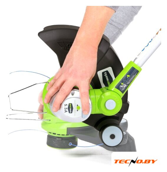 Хотя Greenworks GST5033M не предлагает сменные насадки и телескопическую штангу, его конструкция включает в себя автоматическую подачу лески, что делает его идеальным инструментом для поддержания идеального газона без лишних усилий. Регулировка угла наклона позволяет более гибко подходить к работе в труднодоступных местах, а наличие колес облегчает маневрирование по участку.