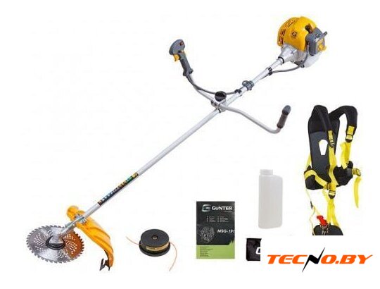 | Аксессуары | - Мотокоса;- Двуплечный ремень с поддержкой спины;- Косильная головка Gunter MSG 25-2;- Пильный диск;- Набор инструментов;- Ёмкость для приготовления топливной смеси;- Руководство по эксплуатации. |
