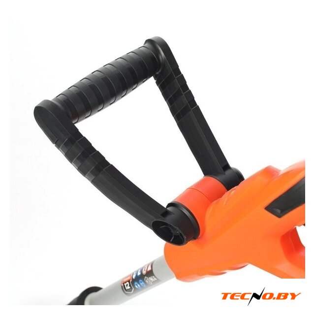 Хотя у триммера нет сменных насадок и разъемной штанги, он компенсирует это регулировкой угла наклона. Это позволяет вам легко маневрировать и настроить инструмент под различные углы поверхности, обеспечивая доступ к каждым уголкам вашего участка.