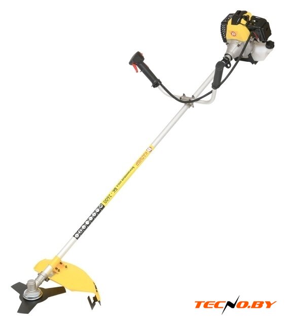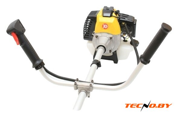Двухтактный двигатель обеспечивает высокую производительность и надежность работы. Объем топливного бака составляет 1,2 литра, что позволяет работать продолжительное время без частых заправок. Хотя триммер не оснащен функцией легкого пуска, простота конструкции обеспечивает быстрый запуск и легкость в эксплуатации.