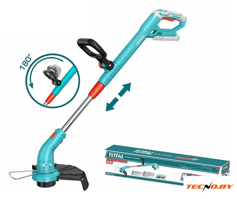 В комплекте поставки вы найдете триммерную головку с леской (5 м), сам триммер, инструкцию и коробку. Однако, важно помнить, что аккумулятор и зарядное устройство требуют отдельной покупки. Этот подход дает вам свободу выбора при подборе источника питания, что делает Total TGTLI20018 универсальным и адаптивным к вашим нуждам инструментом.