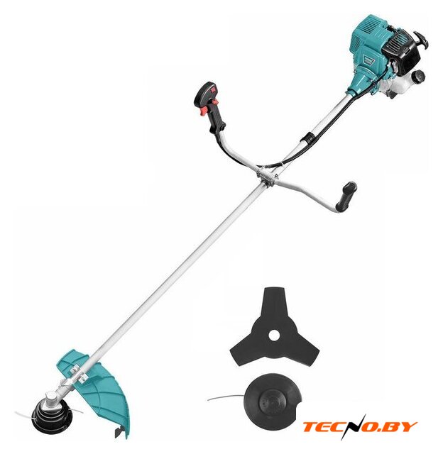 бензиновый, двухтактный, 1500 Вт, оснастка: леска+металлический нож, ширина скашивания: 27.5-48 см, 6.3 кг