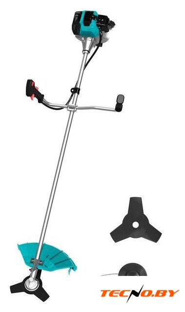 Триммер оснащен двухтактным двигателем внутреннего сгорания с рабочим объемом 42.7 см³. Такой тип двигателя характеризуется высокой мощностью и надежностью. Емкость топливного бака составляет 1.2 л, что обеспечивает длительное время работы без необходимости частой дозаправки, избавляя вас от лишних остановок.