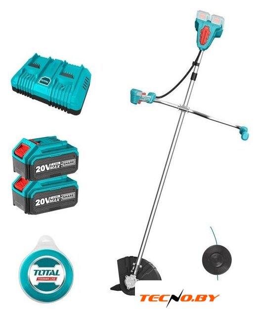 Триммер оборудован двумя Li-ion аккумуляторами емкостью 4 А·ч и напряжением 20 В, что позволяет работать продолжительное время без необходимости частой подзарядки. В комплект входит быстрое зарядное устройство, позволяющее зарядить оба аккумулятора всего за 60 минут.