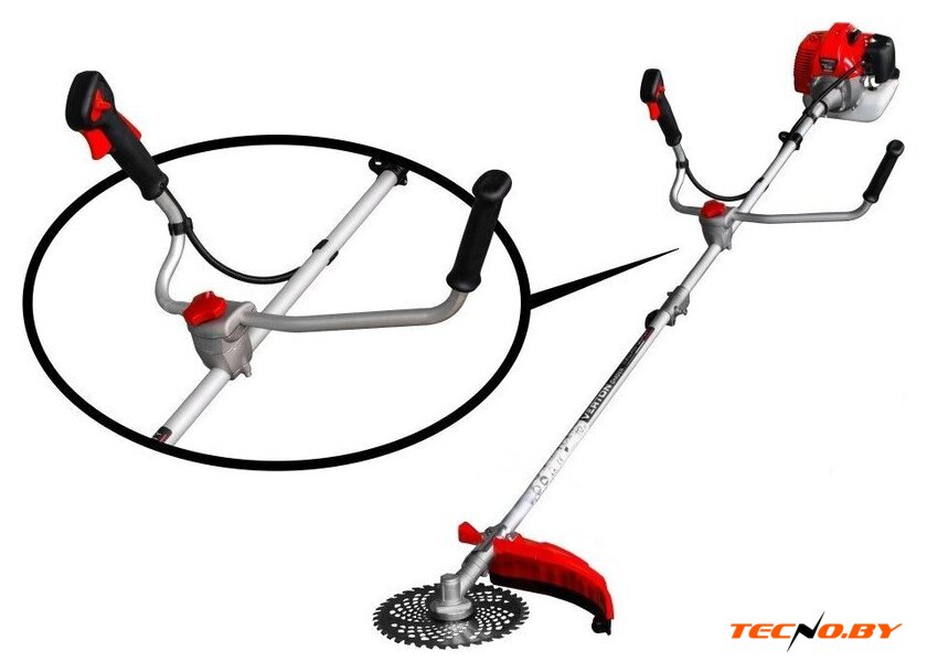 | Комплектация | • Дисковый 40-зубый нож с победитовыми напайками• Катушка из качественного пластика с повышенной прочностью и металлическим сердечником, позволяющий максимально быстро и просто производить заправку лески, d лески до 3 мм.• Набор инструмента для сборки в сумке с замком• Наплечный ремень ранцевого типа |