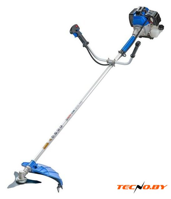 Основой эффективности триммера является двухтактный двигатель с рабочим объемом 33 см3. Емкость топливного бака в 1.2 л обеспечивает продолжительную непрерывную работу без частых остановок для дозаправки. Такой двигатель позволяет триммеру легко справляться даже с густой растительностью.