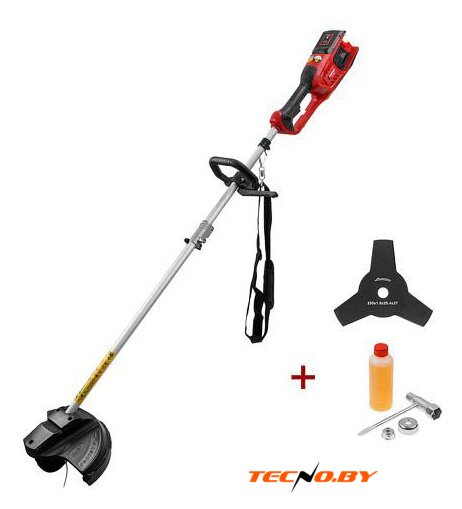| Аксессуары | - Триммер аккумуляторный- Дополнительная рукоятка- Катушка с леской (установлена)- Нож- Защитный кожух- Барашковый винт- Крестообразная отвертка- Гаечный ключ- Торцовый шестигранный ключ- Монтажный ключ- Плечевой ремень- Масло для смазывания редуктора- Паспорт |