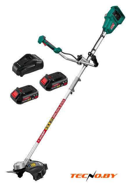 Комплектация включает все необходимое для начала работы: аккумуляторы, зарядное устройство, защитный кожух, плечевой ремень и прочие аксессуары, которые делают использование триммера максимально удобным и безопасным.