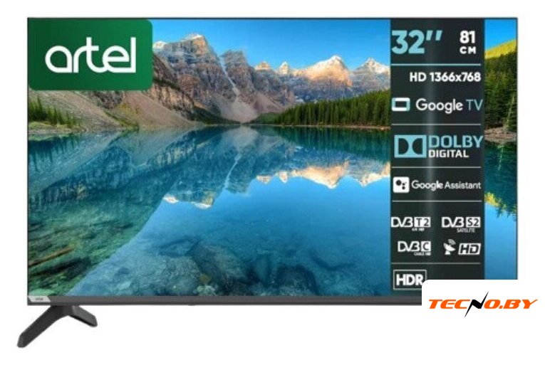 32" 1366x768 (HD), матрица VA, частота матрицы 60 Гц, Smart TV (Google TV), HDR10, HLG, Wi-Fi, смарт пульт