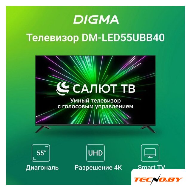 50" 3840x2160 (4K UHD), матрица VA, частота матрицы 60 Гц, Smart TV (Салют ТВ), AirPlay, Wi-Fi, смарт пульт